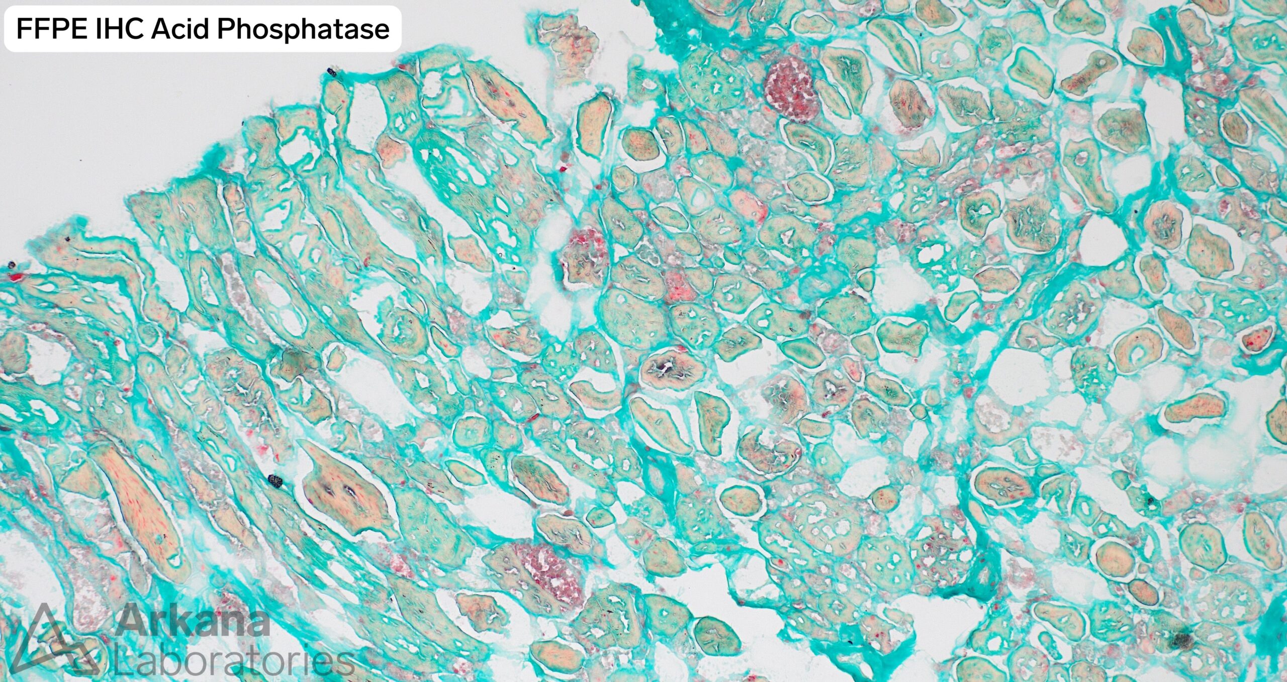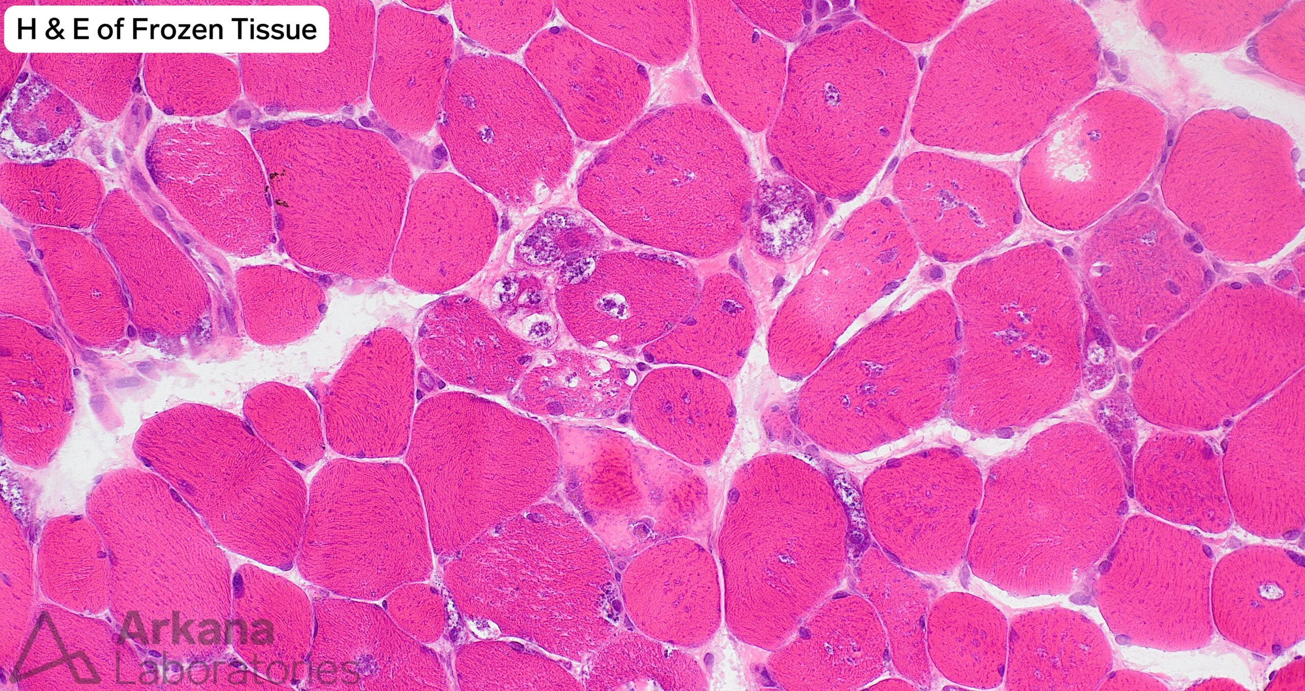 - The presence of a vacuolar myopathy is well-demonstrated on frozen section H&E and modified Gomori Trichrome stained sections. Acid phosphatase preparation shows increased lysosomal type staining within myofiber.